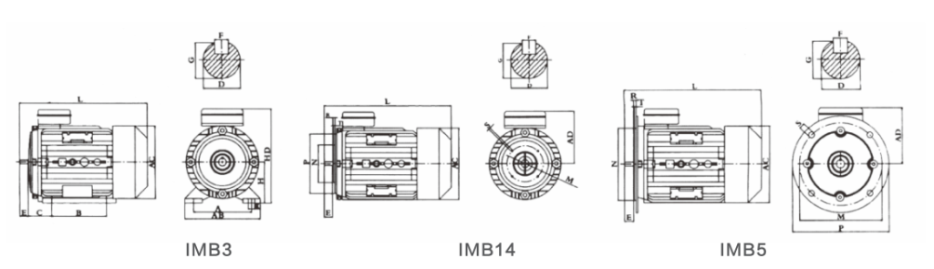 ML series main features;small size,high capacity.strong torque(high power factor and effciency(safety and reliability in running simple construction and easy maintenance.This series motors is with totally enclosed fan-cooled structure,class F insulationJP54 degree of protection and IC0141 method of cooling.The mounting dimensions of the motors are all in conformity with IEC standards.Mounting type:IM B35.